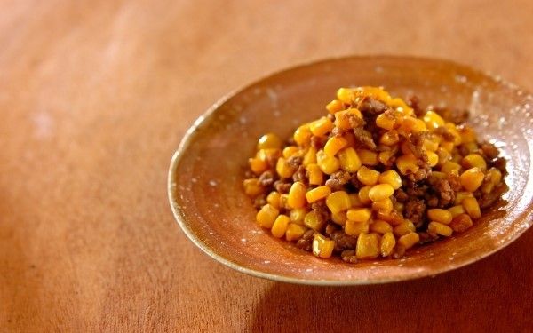 水煮コーンと合いびき肉を炒めるだけ。コーンの甘みとひき肉のコクが合い、香ばしい匂いが食欲をそそります。冷蔵庫で3~5日ほど日持ちするため、お弁当の隙間埋めにもイチオシです。