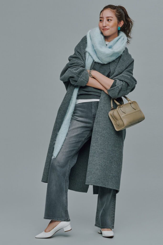 いつもなら黒を選んでいたコートやパンツも、グレーに替えるだけで今年らしく更新されます。ニットやデニムの異素材を組み合わせたり、白をレイヤードや足元に効果的に使ったりすることで、真面目な着こなしから脱却。細部に宿るひと手間が、コーデの完成度を高めます。