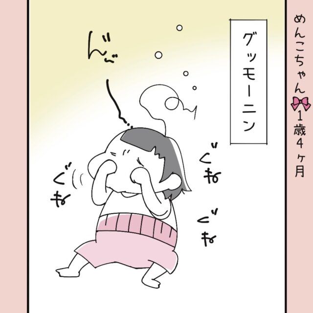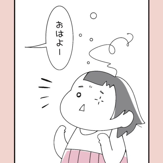 1歳の女の子めんこちゃんのママであるだらだらさんさんから、ある朝のお話です。寝起きでぐねぐねしているめんこちゃんに「おはよー」と声をかけただらだらさんさん。めんこちゃんから返ってきたのは・・・。