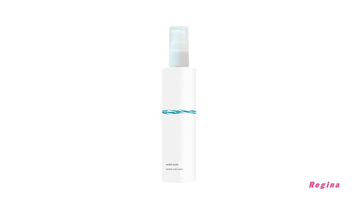 【3】保湿/皮膚科医監修のテストをクリアした、デリケートな肌を落ち着かせる「ゆらぎ敏感肌」用の無添加乳液。肌の調子が日々変わる、常に乾燥を繰り返すなど、この季節にありがちな肌荒れに効果的。リペア&バランス マイルドミルク 120mL ¥1,540円(明色化粧品)