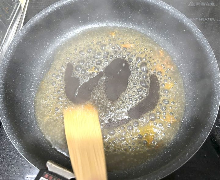 火加減は、弱火から中火(IHクッキングヒーターだと140℃~160℃)です。