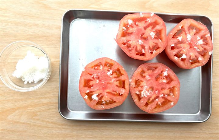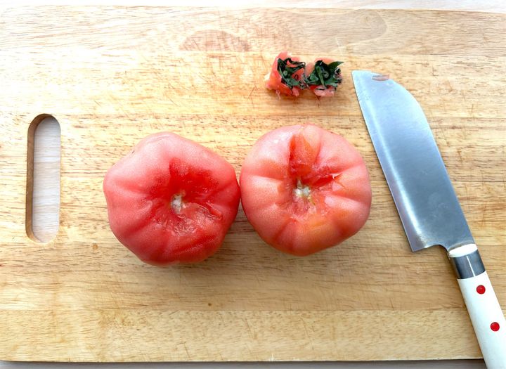 トマトは、下の画像のように「へた」をくり抜いて取り除いたら…