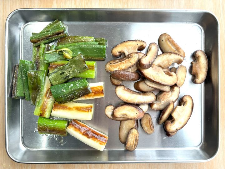 長ねぎとしいたけの焼き上がりは、このような感じです。