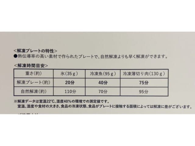 解凍プレートの解凍時間目安