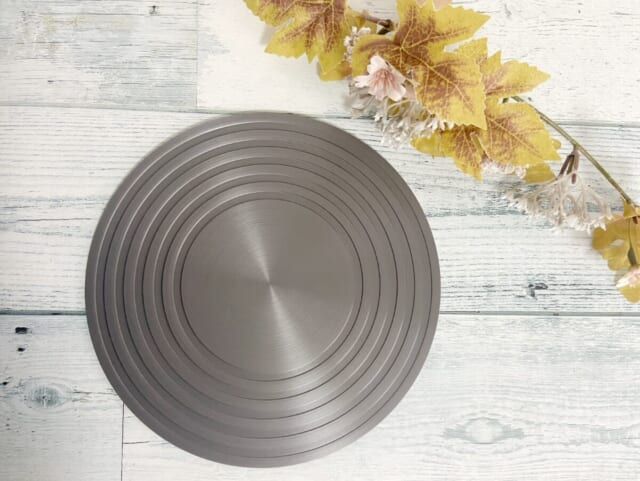 3COINSの解凍プレートは丸いデザイン。サイズ感は約直径19.6cm。厚さは0. 3cmと想像よりも薄い印象です。やや小さめですが、食材を置くにはちょうどいいサイズ感です。収納場所にも困りませんね。電気や水を使わずに解凍できるので節約にもなります。