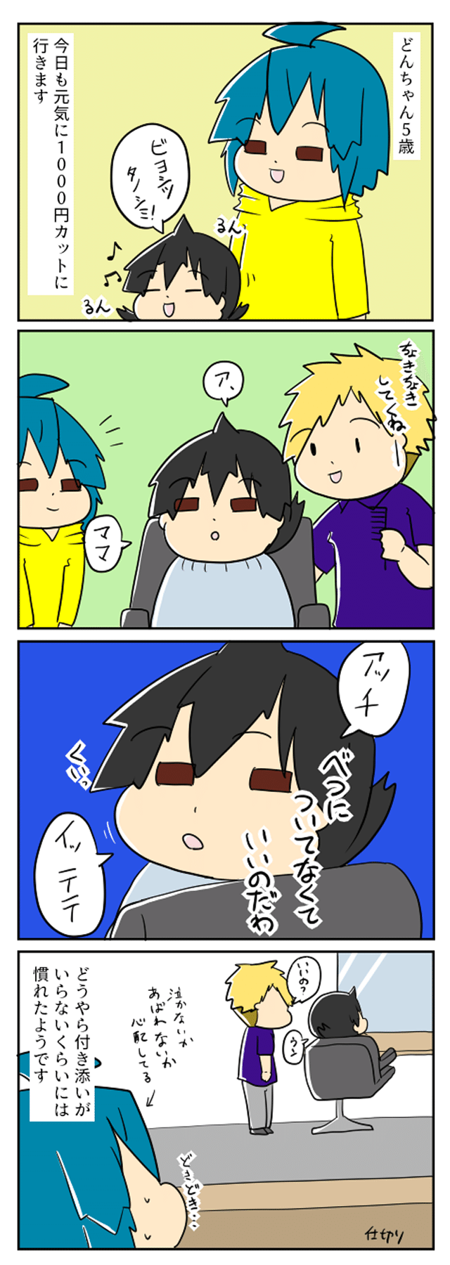 当初は髪を切ることを怖がっていたどんちゃんでしたが、