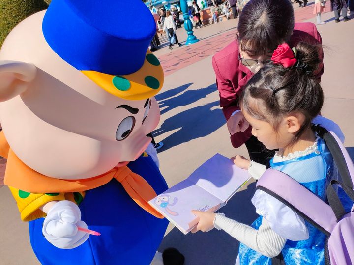 キャラクターたちも遊びに来ていてました!エントランスもキャラクターがたくさんいるのですが、たくさんの人に囲まれていて近づけませんでした…。トゥーンタウンにいる三匹の子豚ちゃんたちは娘とたくさん触れ合ってくれて、ほっこりしました。