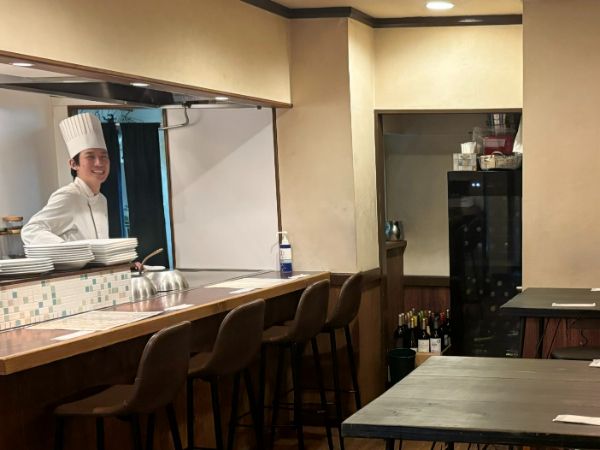 笑顔が素敵なオーナーシェフの大島さんに店名の由来をお聞きしたところ、料理を学んだお世話になった方々の頭文字からだそう。 「食事の時間を楽しく過ごせる居心地のいい空間」を心掛けた店内は木のテーブルが並ぶ落ち着いたアットホームな雰囲気。カウンター席ならシェフの鉄板さばきがよく見えるのでライブ感があり、さらに楽しい時間が過ごせます。