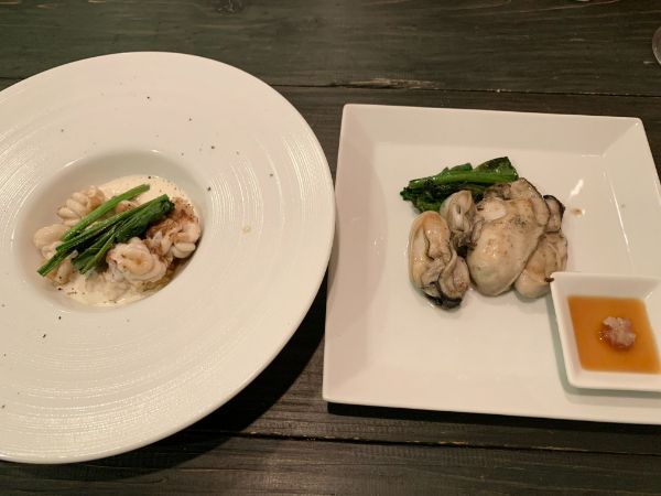 来店時の旬メニュー、「牡蠣のバター焼き」と「たら白子のムニエル」(各580円・Sサイズ)が来てテンションが上がります!