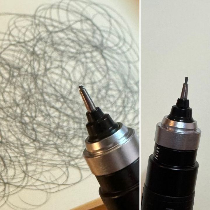 写真はめちゃくちゃ書きまくって芯を減らして、芯が復活した瞬間です(笑)