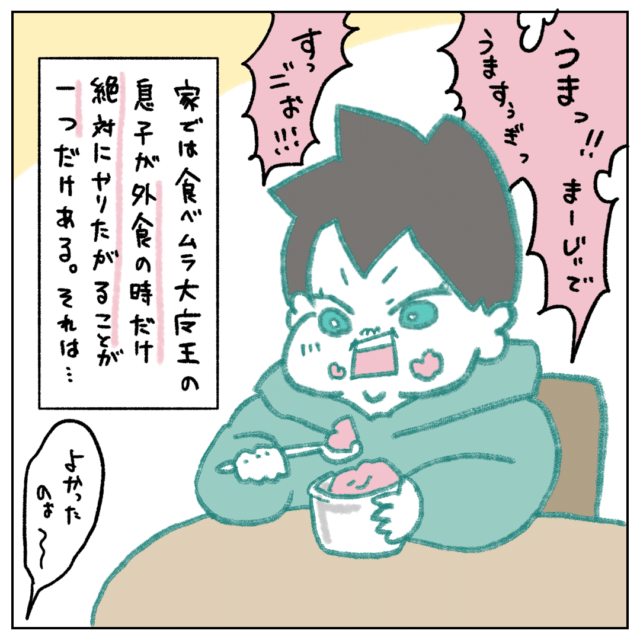 家では食べムラ大魔王だという息子くんですが、外食の時だけ絶対にやりたがることが一つだけあるそう。