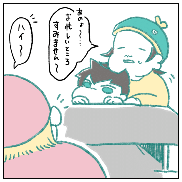 息子くんの言葉を受けて、遠慮がちに店員さんに声をかけるコハダさんさんさん。