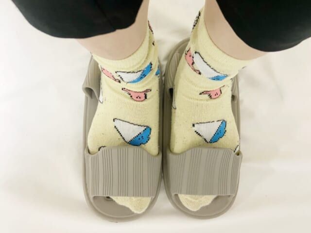 「両履き軽量スリッパ」は、前後どちらからも履ける軽量スリッパ。カラーはグレーとアイボリーの2色展開で発売されています。