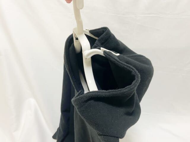 フードを持ち上げて干すことができるので、パーカを乾かす時間を短縮することが可能です。フードを固定するクリップもついているので、干してる最中にフードが外れてしまっている……と、いう悩みを解決してくれます。