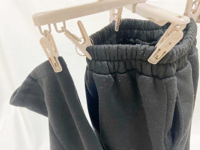 すそ部分を外側に留めれば長ズボンが効率よく干すことが可能。こちらのハンガーも室内干しが多いという人に特におすすめ!