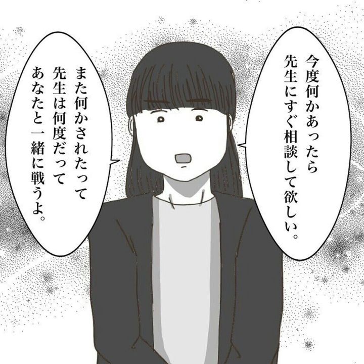 先生の対応はとても平等でわかりやすく、心強い味方ができて一安心のように思えます。先生が言うように、今回のことももっと早く先生に相談すべきだったのかもしれません。