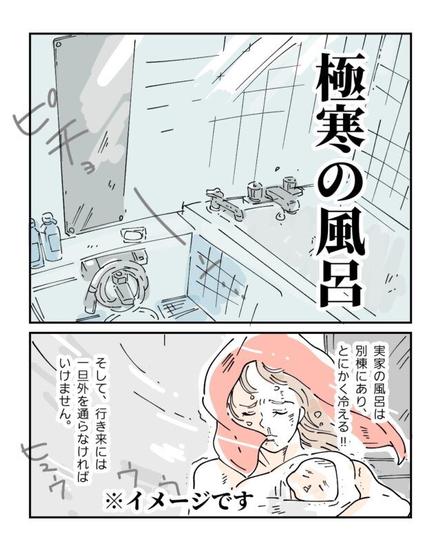 極寒のお風呂は・・赤ちゃんだけでなく産後のママにも過酷ですよね・・おー寒っ!!(震)