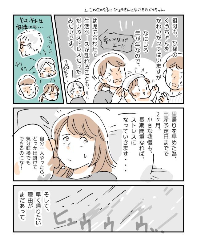 里帰りを早めた為、出産予定日まで2ケ月、小さな我慢も長期間重なればストレスに・・