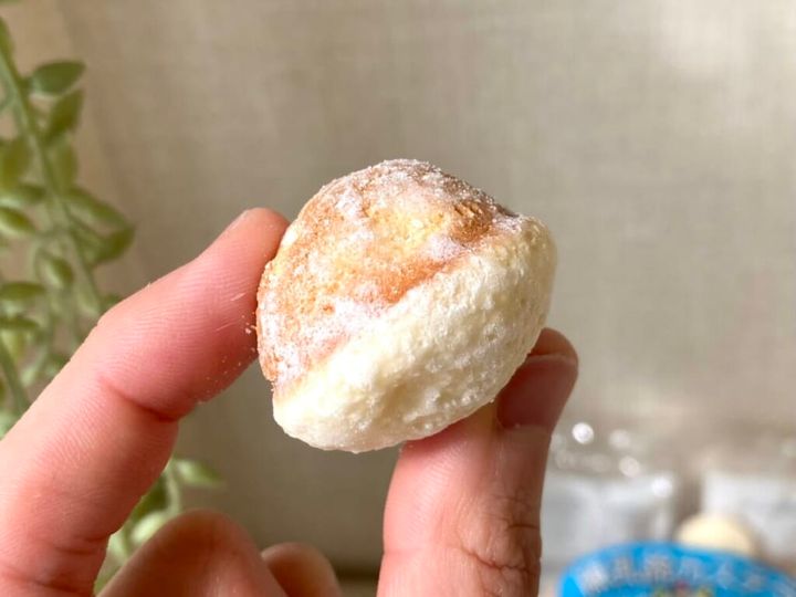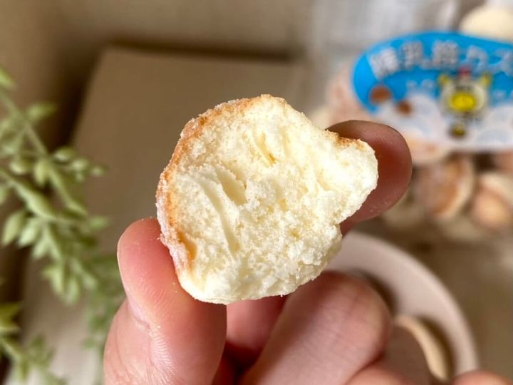 食べてみると、ふわっと軽やかな食感で、かなりしっとりしています。練乳の甘味が口いっぱいに広がり、ミルクとの相性が抜群。バウムクーヘンの味わいにちょっと似ているかもしれません! なにはともあれ、食べ始めると止まらないおいしさ! 軽やかで、ぱくぱくぱくぱく食べ進めてしまいますよ。
