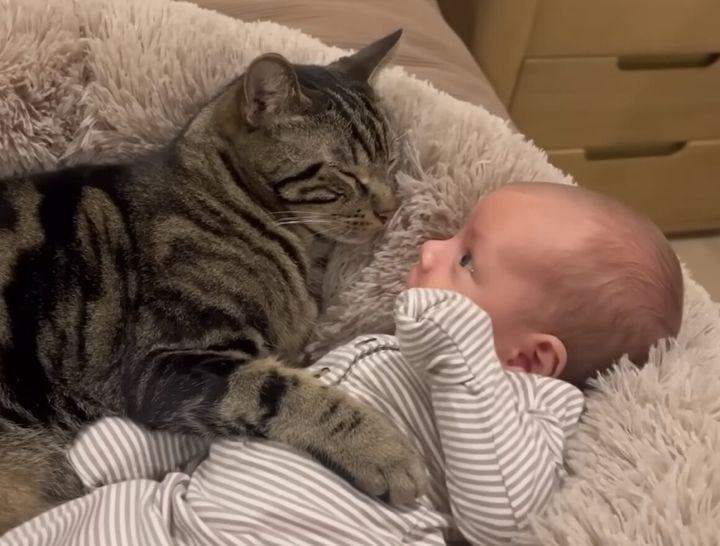 3. 寝かしつける気だったけど 赤ちゃんより先に寝落ちしちゃった猫さん♡