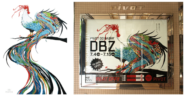 PIVOT(大通にあったファッションビル)「ピヴォDOバザール」のポスター画の尾長鶏