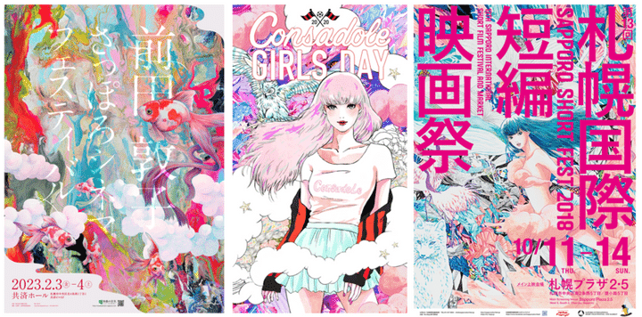 これまでにさまざまなポスタービジュアルや雑誌の挿絵等を手掛けたほか、海外のアートフェスへの出典・個展の開催など精力的に活動しています。