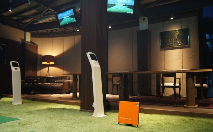 室内は左右兼用、右、左の全3打席が用意され、4台の大型モニターに接続したトラックマンレンジを常設。トラックマンレンジを使った練習はもちろん、200ヤードを超える空間を目の前にした「バーチャルラウンド」も楽しめます。食事やドリンクはレストランシェフの手作りメニューをデリバリーできるので、活用の仕方はさまざま。ゴルフ仲間を誘ってのバーチャルコンペや、ゴルフパーティーを開催することもできそうです。