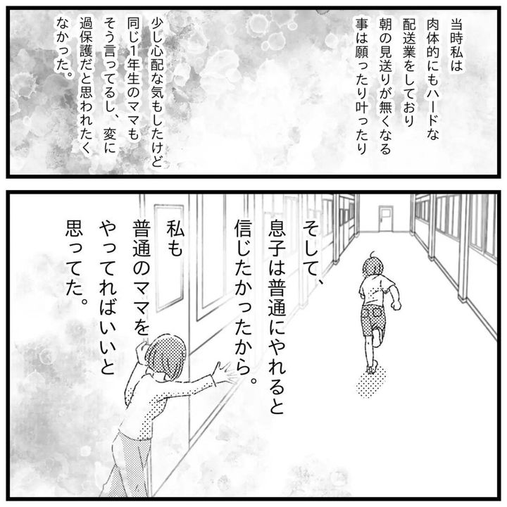 その後はしばらく朝の登校に付き添っていましたが、同じ班のママの意見を聞いてやめることに。息子は他の子たちと同じように普通に学校生活を送れるだろうと信じたかったのです。