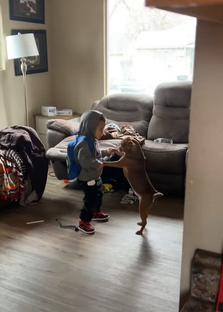 男の子が部屋でダンス中! 一緒に踊る相手の姿にビックリしますが、とても微笑ましい光景でした。