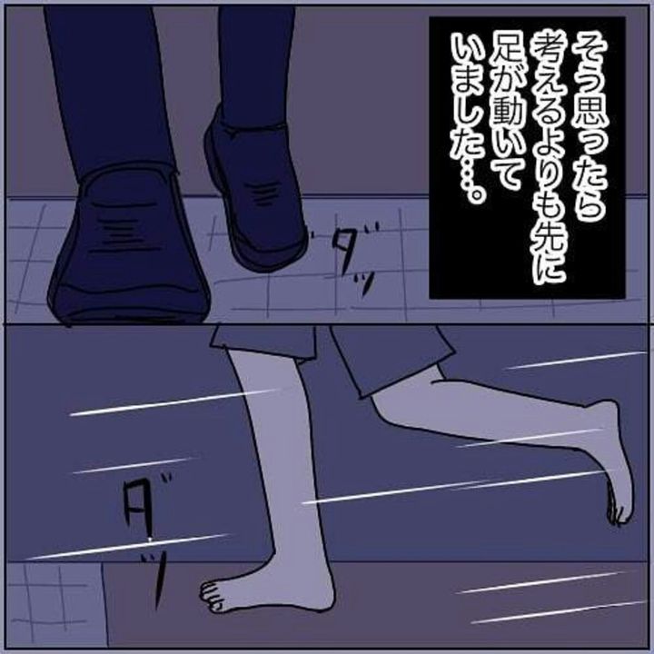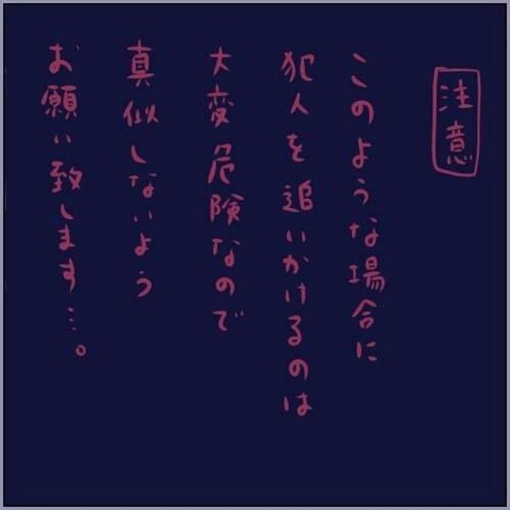 犯人を追いかけたかとさん。冷静になれば危険な行動であることがわかりますが、極限の状態でいつも正しい判断ができるものではないと思い知らされます。