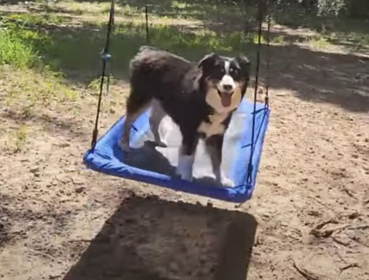 楽しそうに専用ブランコで遊ぶ犬さんなのでした♪