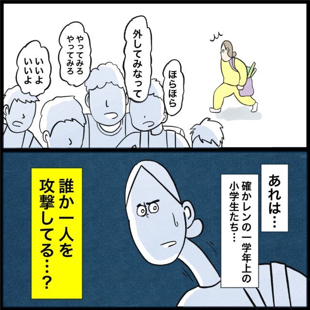 9歳長男レンくん、6歳長女スイちゃん、3歳次男ヨウちゃん、3人のお子さんのママであるはんままさんから、ほっこりしたお話です。小学生男子の集団を見かけたはんままさん、一人の子にみんなが何か言っている様子にイジメ!?と感じて心配していたら・・・。