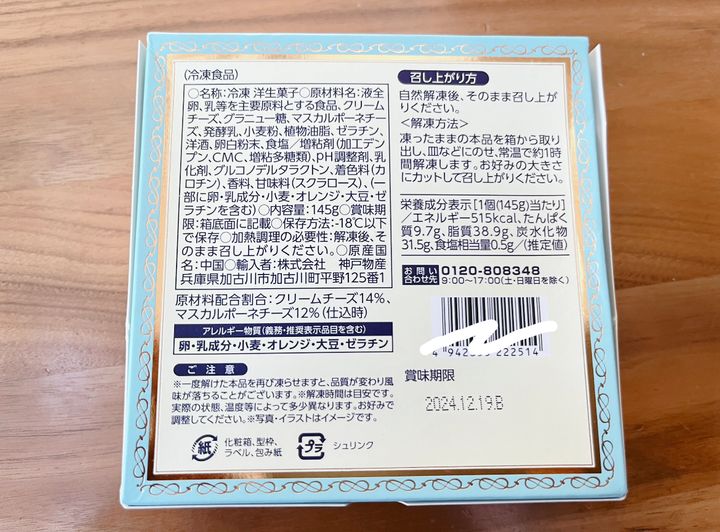 箱から出して、お皿に載せて、常温で1時間ほど解凍していただきます。