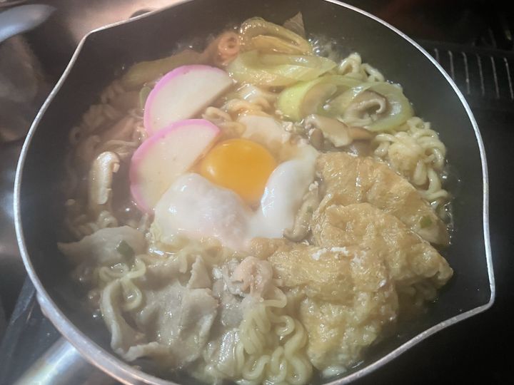 妻:煮込みうどん風にしてみたよ。食材のうまみも加わって、スープにさらに深みが出るよね。