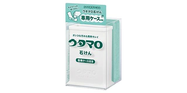 ウタマロ石けんには、公式の「ウタマロ石けん専用ケース」が販売されています。ケースをつけることで、石けんを持つ手がヌルヌルすることがなく握りやすくなり、汚れにピンポイントで石けんを塗ることができます。また、内側にはリブがあり、石けんをしっかり固定することが可能。そのまま立てておけるので、おき場所に困ることもありません。