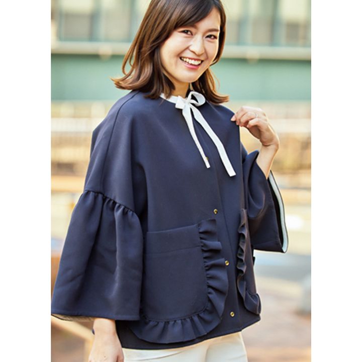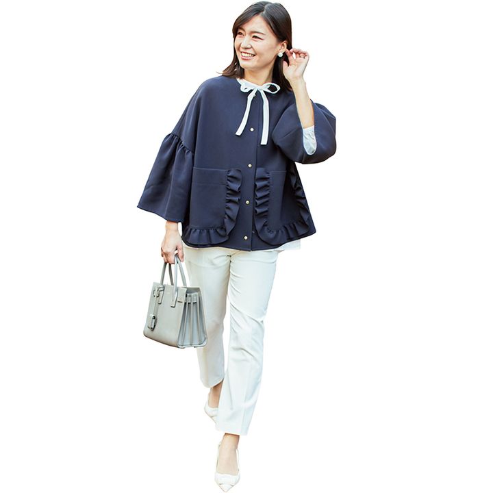 甘やかなフォルムと衿元フリルで ニットでも極上のきちんと感を実現