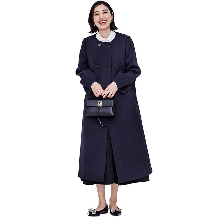 アウター¥63,800(ランバン オン ブルー/レリアン)ブラウス¥42,900(マディソンブルー)スカート¥49,500(エステータ/オンワード樫山お客様相談室)バッグ¥72,930(カフネ)シューズ¥41,800(ピッピシック/トゥモローランド)ピアス¥15,400(メラキ/フラッパーズ)