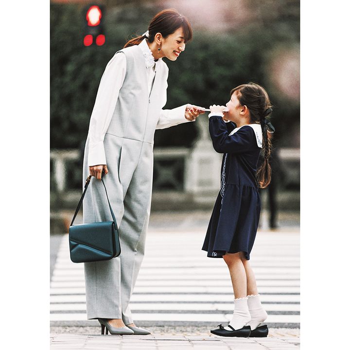 アウター¥52,800 ブラウス¥18,700(ともにユナイテッドアローズ/ユナイテッドアローズ 六本木ヒルズ店)パンツ¥18,700(セルフォード/セルフォード ルミネ新宿1店)バッグ¥383,900(ロジェ ヴィヴィエ/ロジェ・ヴィヴィエ・ジャパン)シューズ¥42,900(ファビオ ルスコーニ/ファビオ ルスコーニ ルミネ有楽町店)ピアス¥1,980,000(TASAKI)【KIDS】ボレロ¥8,250 シューズ¥5,280(ともにグリーンレーベル リラクシング/ユナイテッドアローズ グリーンレーベル リラクシング 二子玉川ライズ店)ワンピース¥28,600(こども ビームス)靴下/スタイリスト私物【MENS】ジャケット¥60,500 パンツ¥38,500〈ともにエストネーション〉シャツ¥37,400〈エリッコ フォルミコラ〉(すべてエストネーショングランフロント大阪店)その他/スタイリスト私物