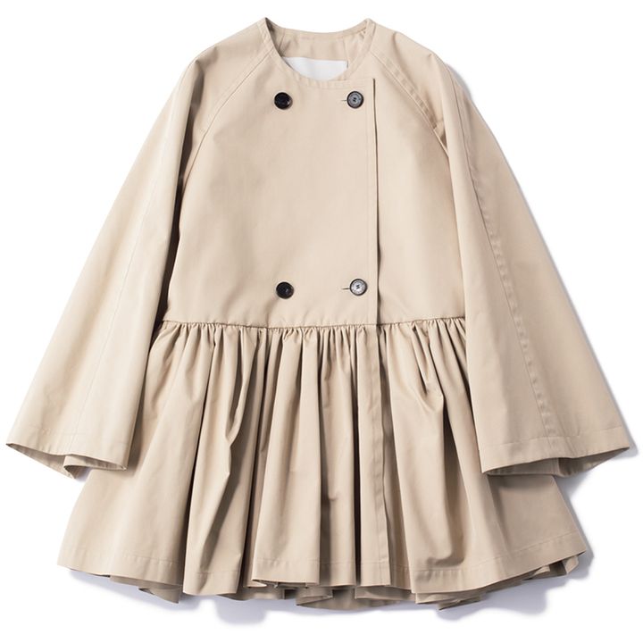 優しい白が上品な ペプラム切り替えコート