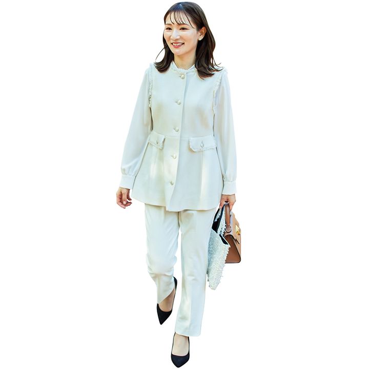定番のブラウス×パンツも 立体ペプラムの重ね技で鮮度上々