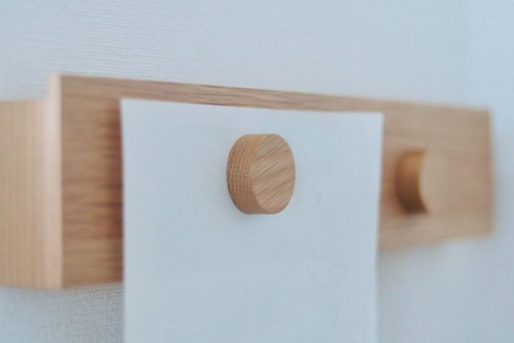 2つのマグネットは前面にくっつくようになっています。本体と同じ木目なので、悪目立ちしないのがいい!