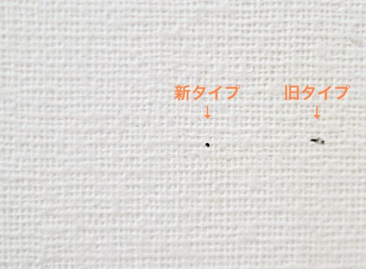 小さなピンとはいえ、外したときに、どのくらいの穴が開くか心配ですよね。実際に試してみました。
