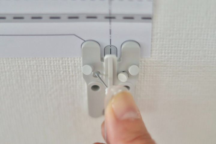 ガイド用紙の位置に合わせて、1つのフックにつき5つの固定ピンを刺していきます。簡単に押すための部品も入ってるので、指も痛くなることなく取り付けられました。