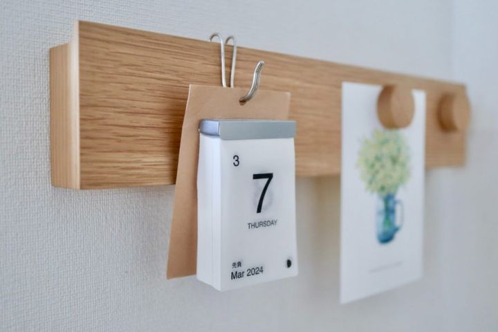 最大のメリットは、取り付けが簡単なこと。石膏ボードの壁なら、小さなピンだけで簡単に取り付けることができます。