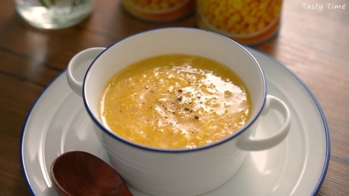 コーンを細かくして水と鶏がらといっしょに鍋で煮込み、水溶き片栗粉でとろみをつけ、最後に卵をひとつ加えると中華コーンスープに。コーンの甘みとスープの塩加減が絶妙なおいしさです。
