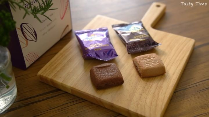 パッケージの中には、個包装のダークとミルクのクッキーが合計34個!ブラウニーというよりもソフトクッキーのような味わいです。