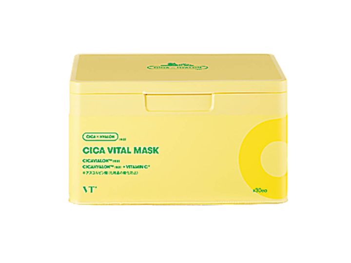 ゆずビタミンを配合し、3分間貼るだけで透明感とツヤをもたらす大人気シートマスク。 VT シカバイタル マスク(30枚入り)¥2,420/VT COSMETICS