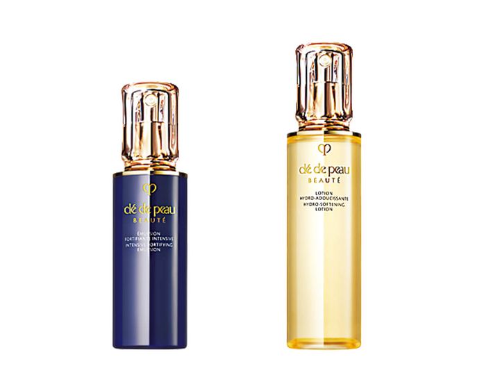左•肌をうるおいで満たし、明るくツヤのある肌へ。クレ•ド•ポー ボーテ エマルションアンタンシヴn(医薬部外品) ¥15,400、右•肌荒れや乾燥から肌を守り、みずみずしい肌へと導くローション。クレ•ド•ポー ボーテ ローションイドロA n(医薬部外品)170ml ¥12,650/ともにクレ•ド•ポー ボーテ