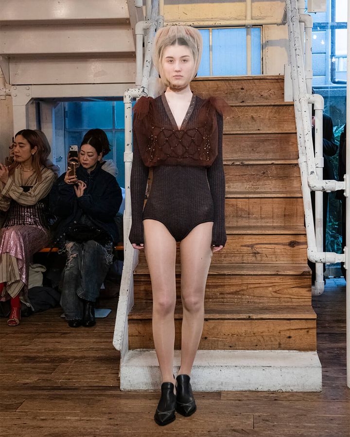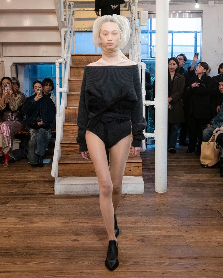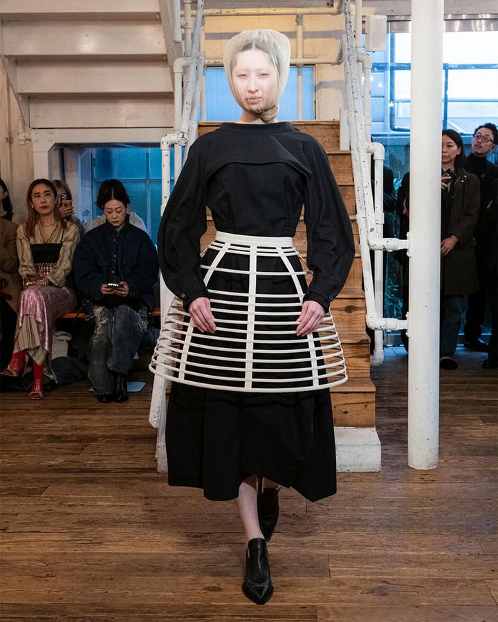 バレエのエレガンスとパンクの生命力をもとに、その儚さと強さ、相反するイメージの融合から生まれる「強いエレガンス」をコンセプトに掲げ、人間の仕草や動きに伴う美しさと、その存在感を追求した衣服を提案し続ける「CHIKA KISADA」。