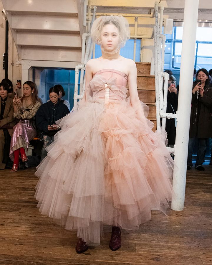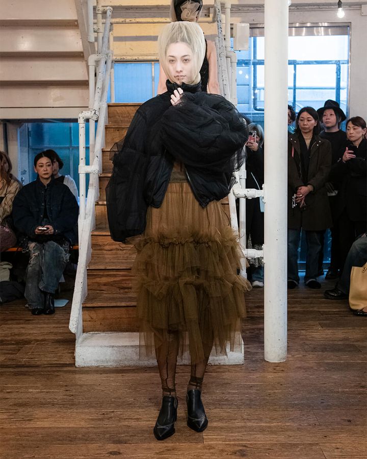 そしてレザージャケットやデニムジャケットにはブランドを象徴するチュールが組み合わせられ、女性の強さと可憐さを感じさせる優雅な余韻を残した。